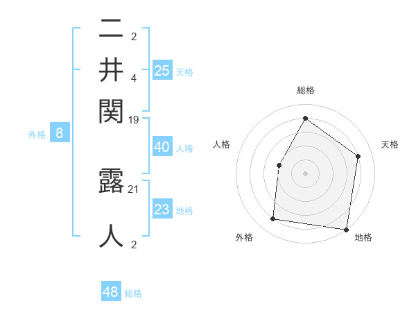 二井関 露人さんの総格は48画の4点!