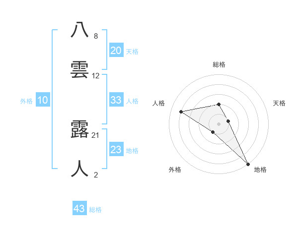 八雲 露人さんの総格は43画の2点!