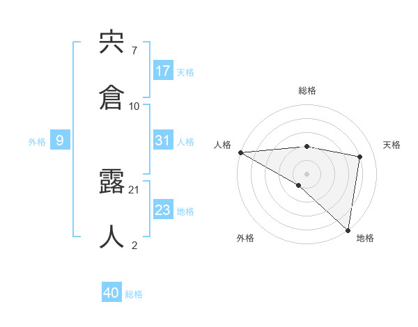 宍倉 露人さんの総格は40画の2点!