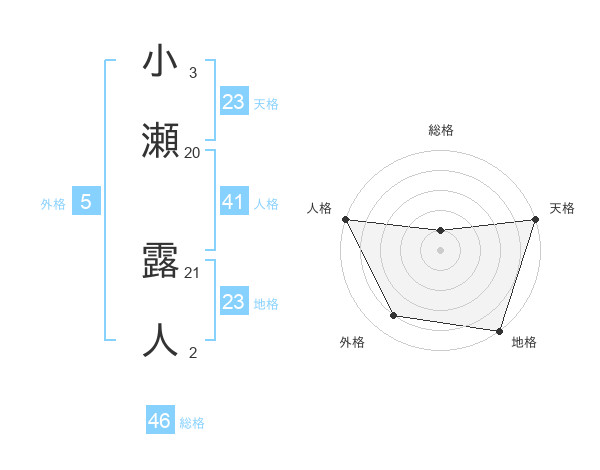 小瀬 露人さんの天格は23画の5点!