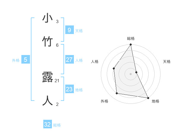 小竹 露人さんの総格は32画の5点!