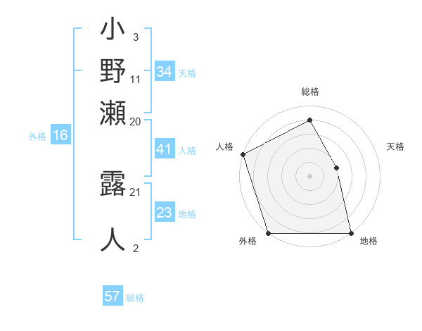 小野瀬 露人さんを姓名の画数から五運を鑑定