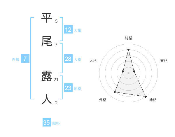 平尾 露人さんの総格は35画の4点!