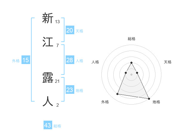 新江 露人さんの総格は43画の2点!