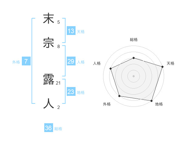 末宗 露人さんを姓名の画数から五運を鑑定