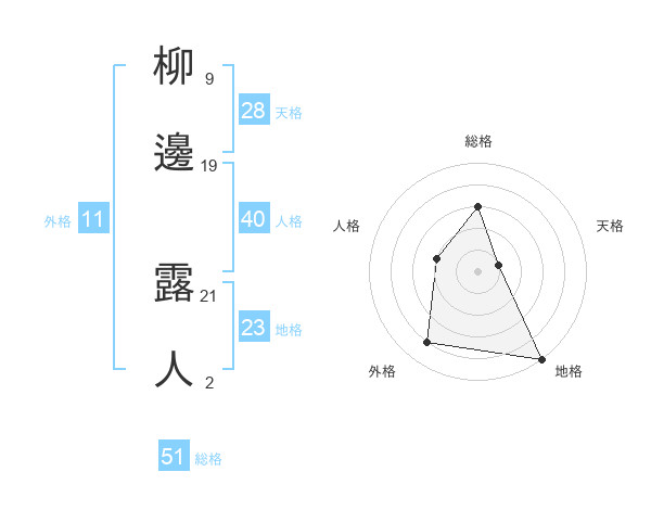 柳邊 露人さんを姓名の画数から五運を鑑定