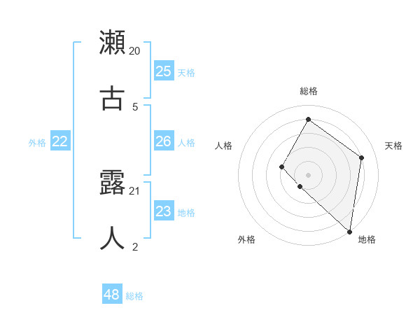 瀬古 露人さんを姓名の画数から五運を鑑定