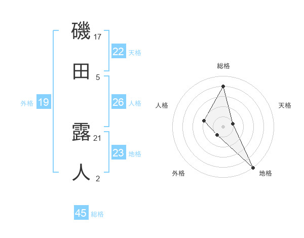 磯田 露人さんの総格は45画の4点!