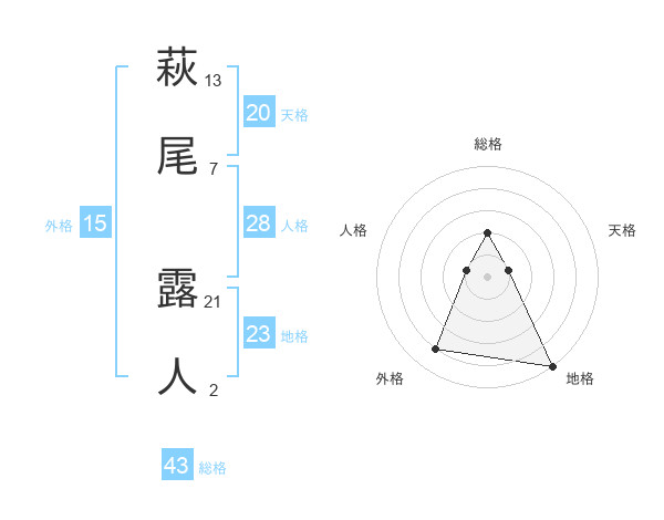 萩尾 露人さんの総格は43画の2点!