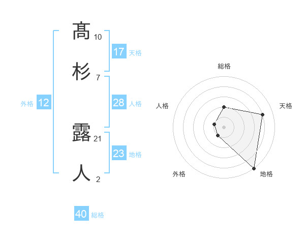 髙杉 露人さんを姓名の画数から五運を鑑定