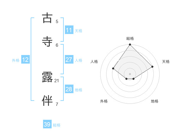 古寺 露伴さんの総格は39画の5点!