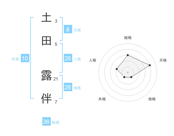 土田 露伴さんの天格は8画の4点!
