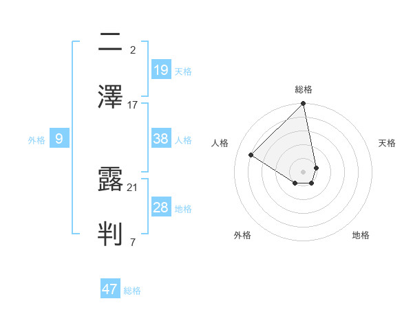 二澤 露判さんの総格は47画の5点!