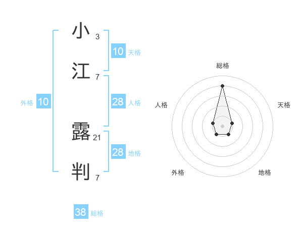 小江 露判さんの総格は38画の4点!