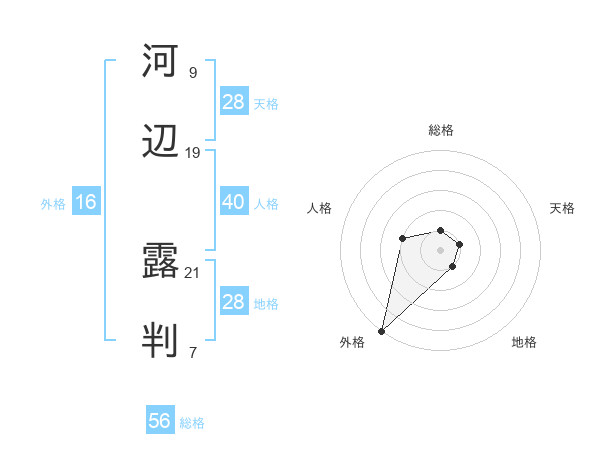河辺 露判さんの地格は28画の1点!