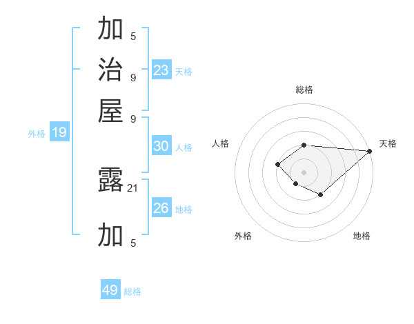 加治屋 露加さんを姓名の画数から五運を鑑定