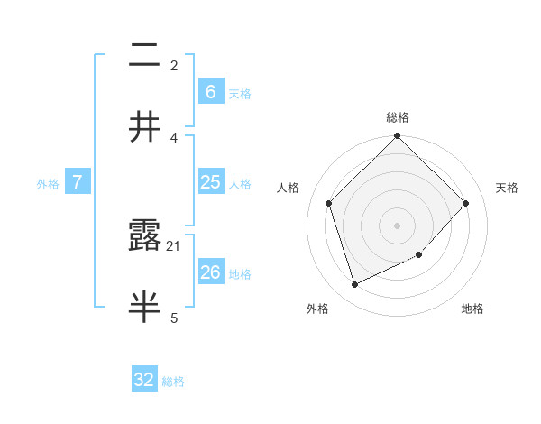 二井 露半さんの総格は32画の5点!