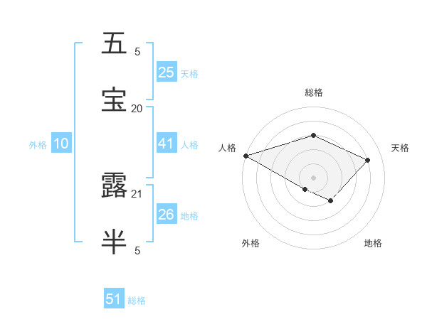 五宝 露半さんの総格は51画の3点!