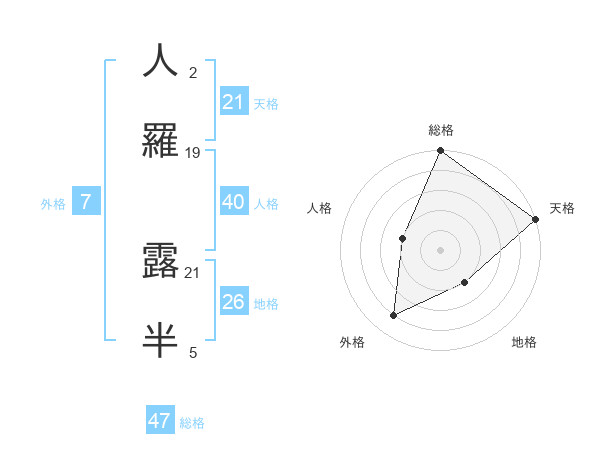 人羅 露半さんの総格は47画の5点!