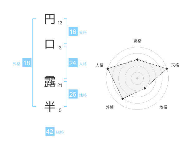 円口 露半さんの天格は16画の5点!