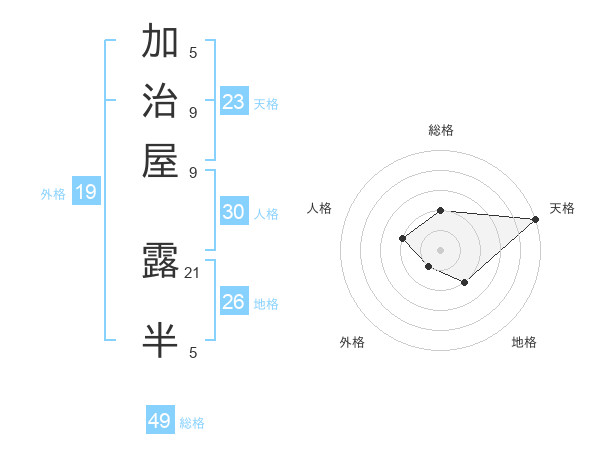 加治屋 露半さんを姓名の画数から五運を鑑定