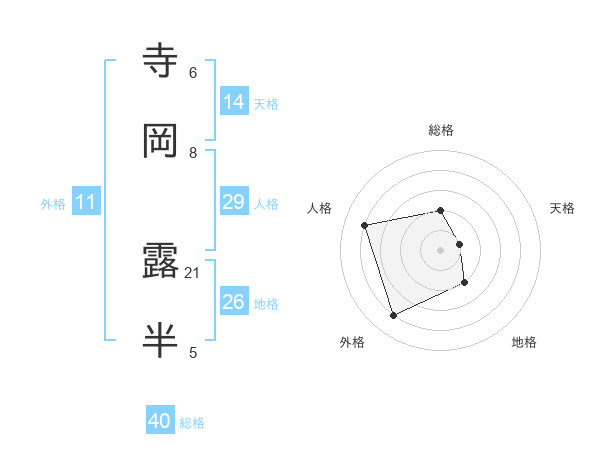 寺岡 露半さんの総格は40画の2点!