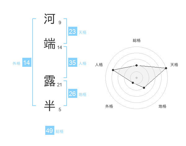 河端 露半さんの総格は49画の2点!