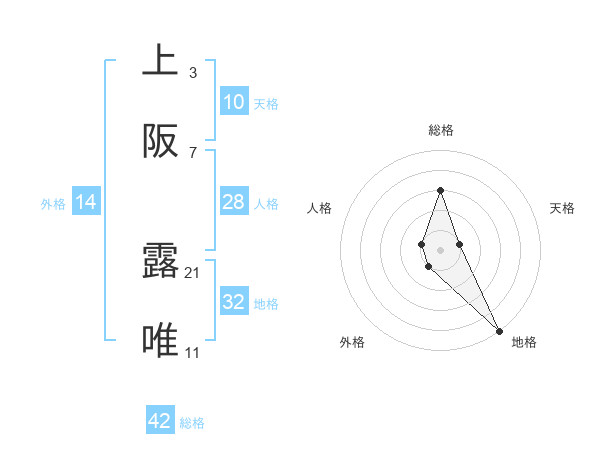 上阪 露唯さんを姓名の画数から五運を鑑定
