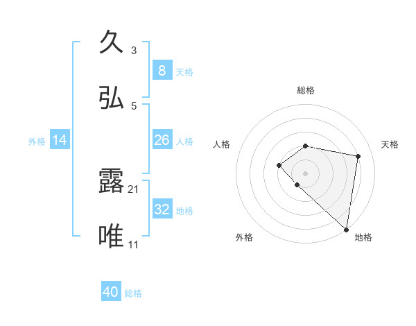 久弘 露唯さんの総格は40画の2点!