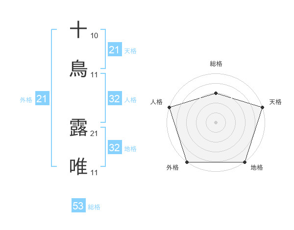 十鳥 露唯さんの総格は53画の3点!