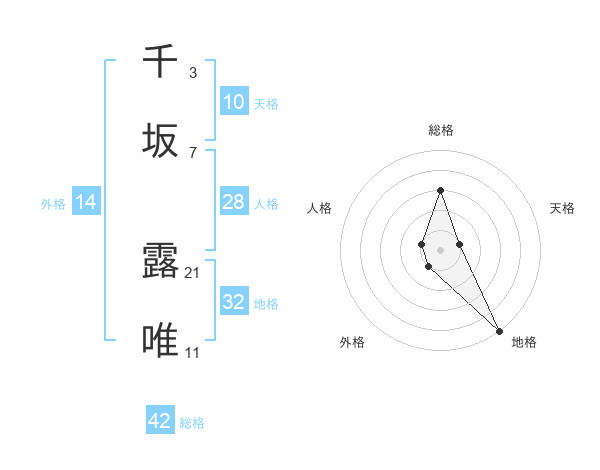 千坂 露唯さんを姓名の画数から五運を鑑定