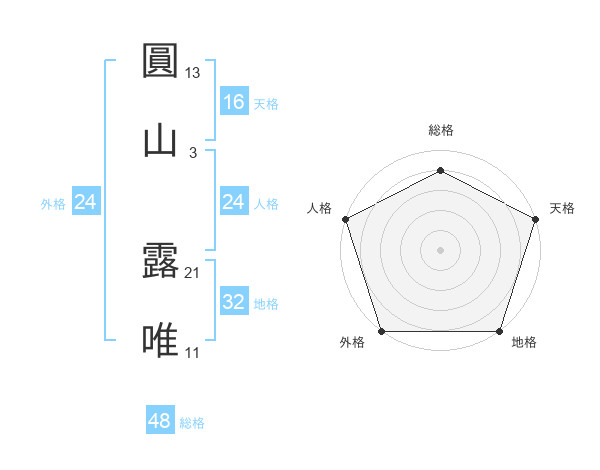 圓山 露唯さんの外格は24画の5点!