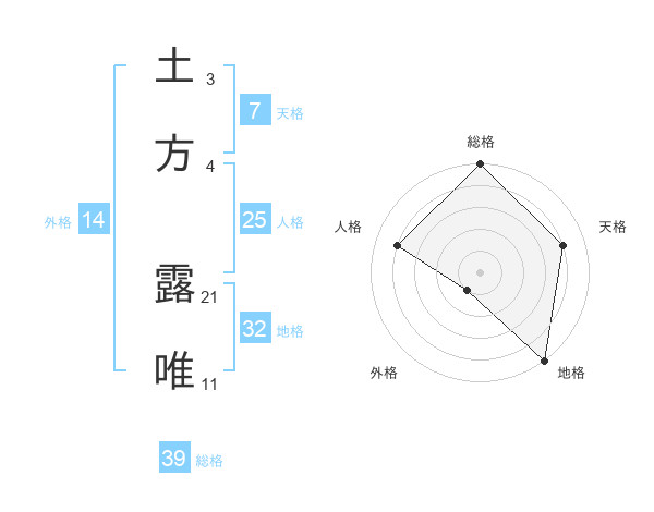 土方 露唯さんの総格は39画の5点!