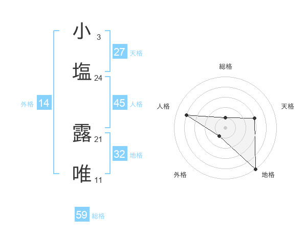 小塩 露唯さんを姓名の画数から五運を鑑定