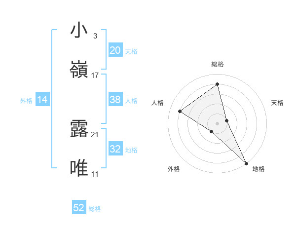 小嶺 露唯さんを姓名の画数から五運を鑑定