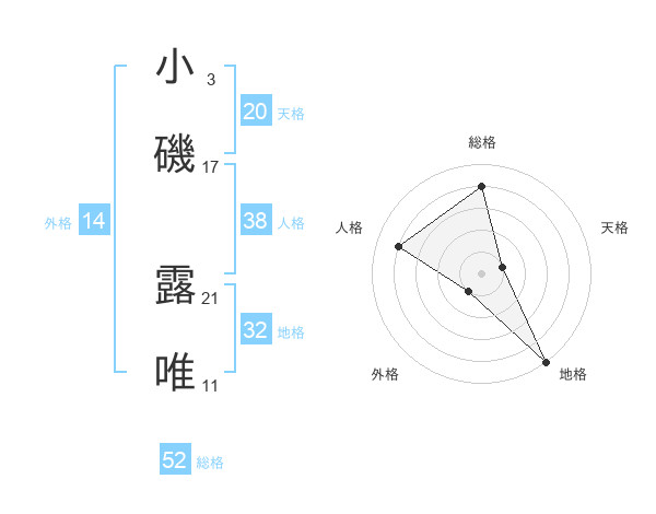 小磯 露唯さんを姓名の画数から五運を鑑定