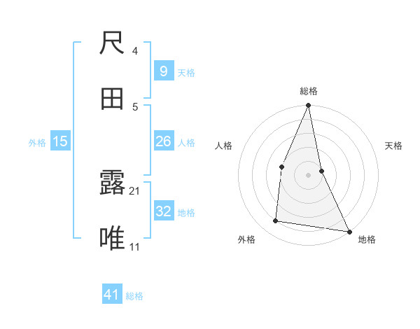 尺田 露唯さんの総格は41画の5点!