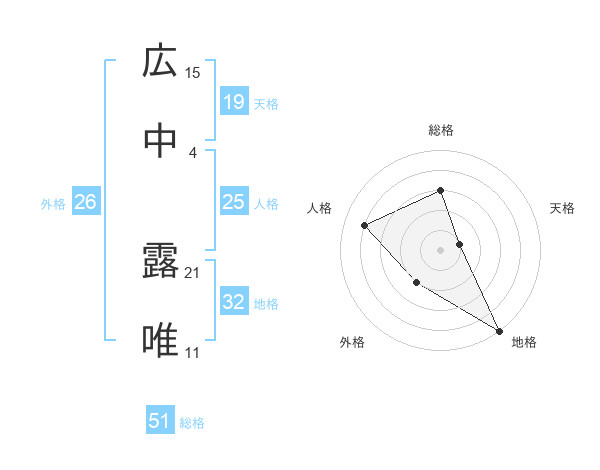 広中 露唯さんの総格は51画の3点!