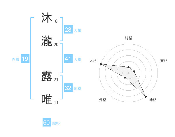 沐瀧 露唯さんを姓名の画数から五運を鑑定