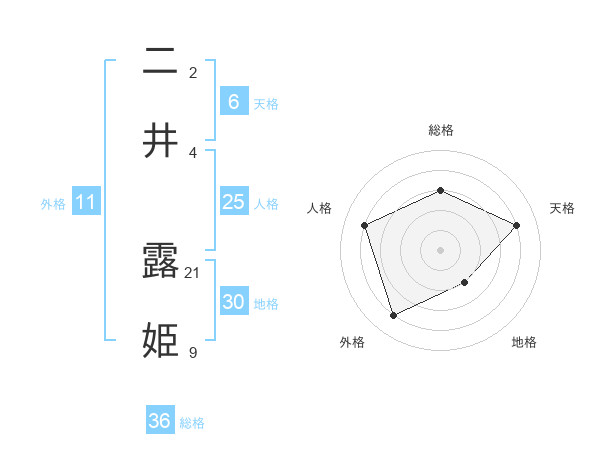 二井 露姫さんの天格は6画の4点!