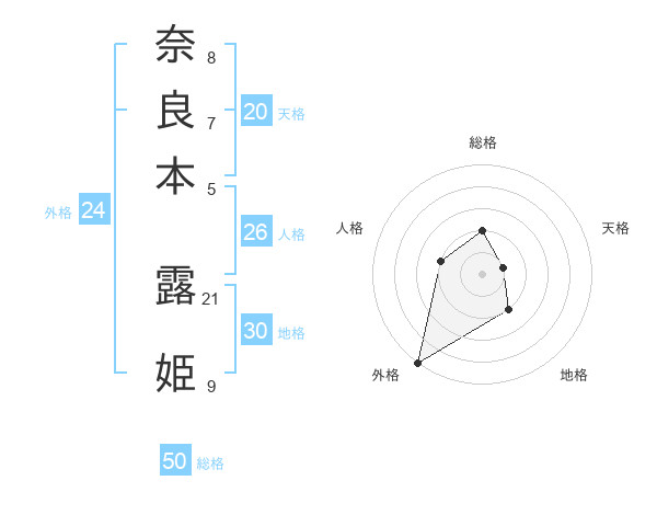奈良本 露姫さんの総格は50画の2点!