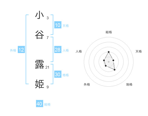 小谷 露姫さんを姓名の画数から五運を鑑定