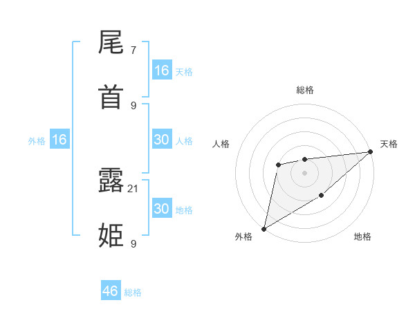 尾首 露姫さんを姓名の画数から五運を鑑定