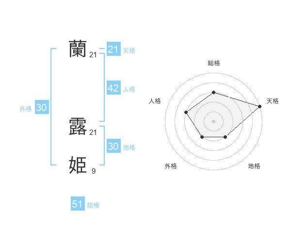 蘭 露姫さんの総格は51画の3点!