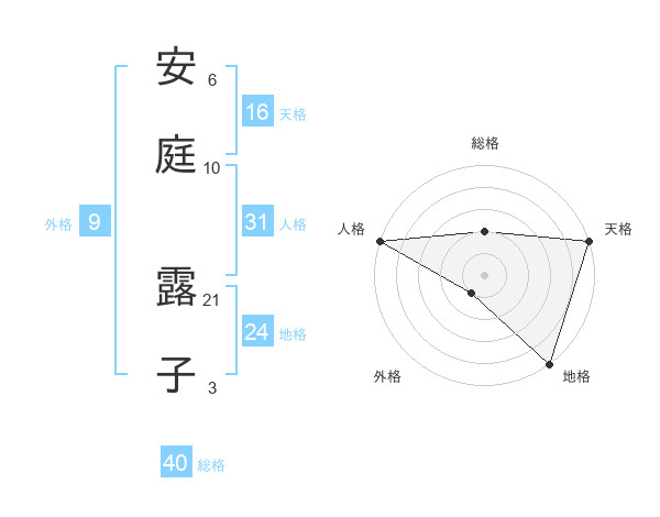 安庭 露子さんの天格は16画の5点!