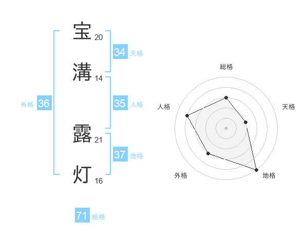 宝溝 露灯さんの総格は71画の3点!