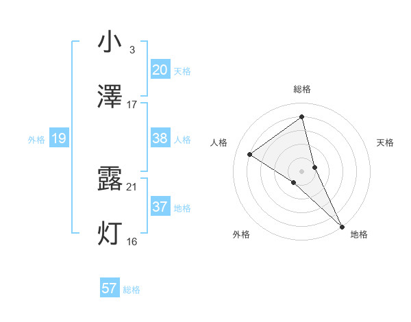 小澤 露灯さんを姓名の画数から五運を鑑定