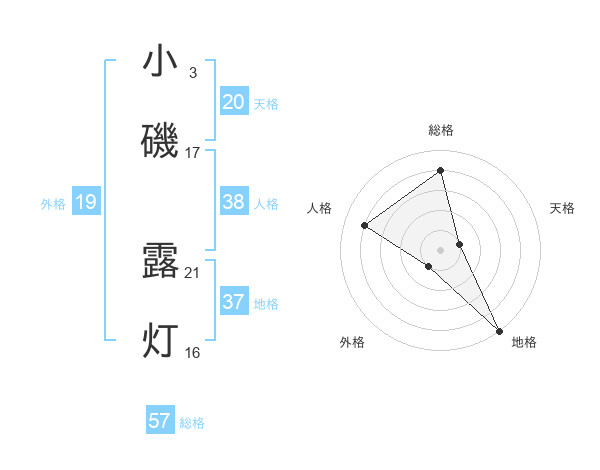 小磯 露灯さんの総格は57画の4点!