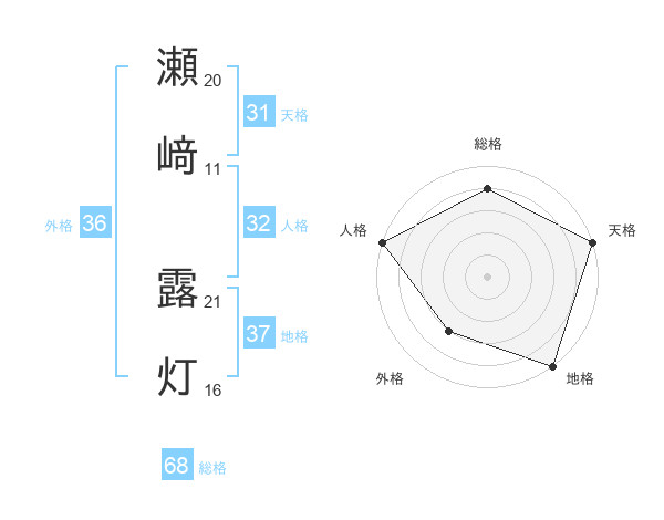 瀬﨑 露灯さんを姓名の画数から五運を鑑定