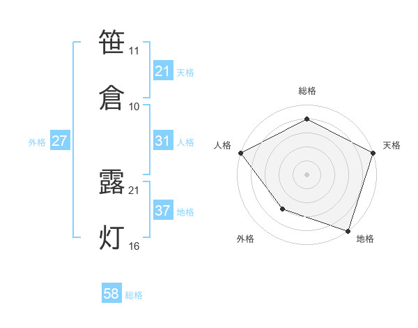 笹倉 露灯さんを姓名の画数から五運を鑑定